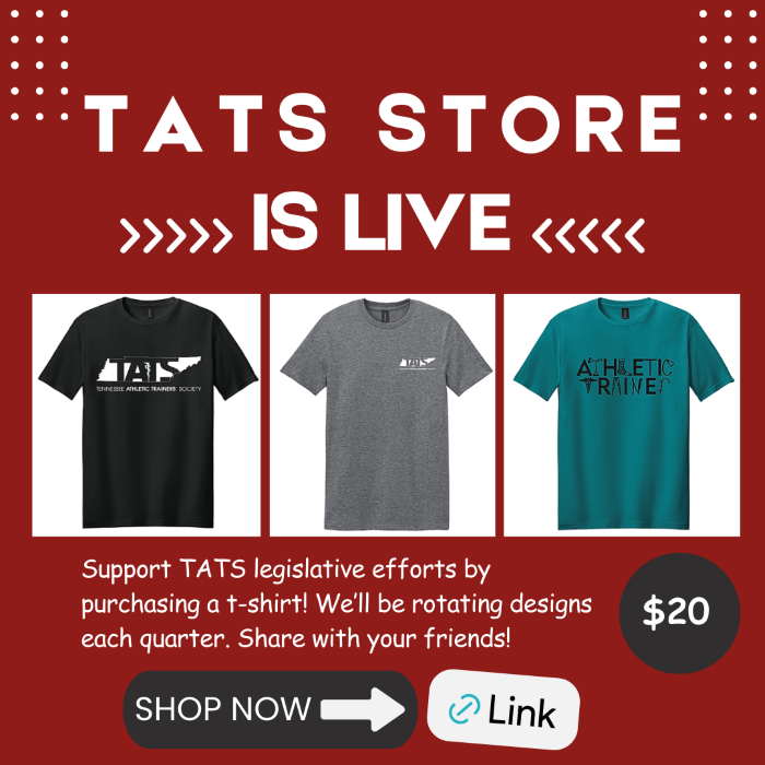 Hey Friends! In support of our legislative efforts, TATS has started a store page, linked in the main navigation banner in the far right corner of the TATS website. Currently, we have three t-shirt designs available, each with 2 shirt color options. Please consider purchasing a shirt! We'll be rotating designs each quarter and having design contests soon, so keep an eye out!